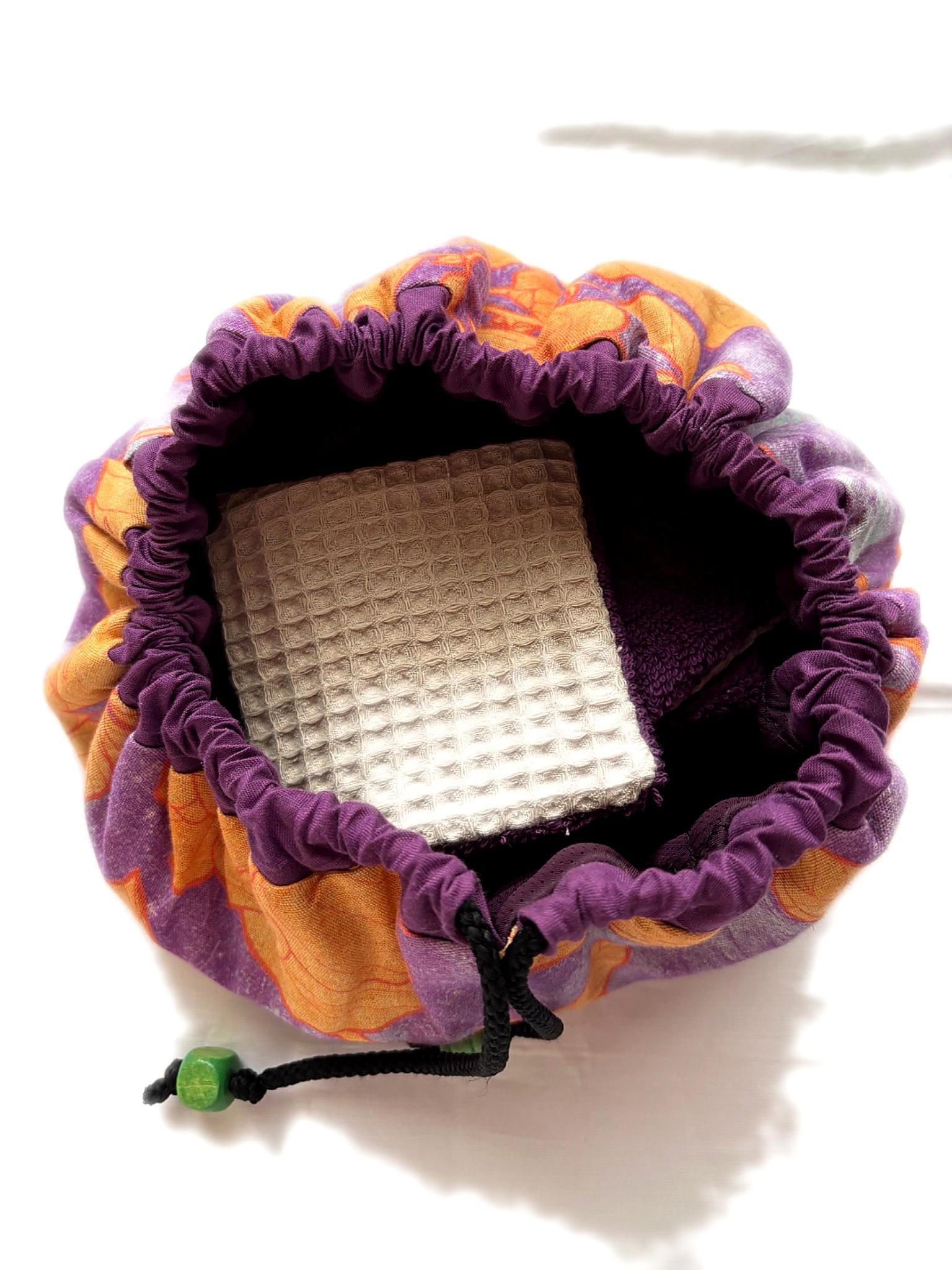 Este Kit reutilizable incluye un neceser circular exclusivo para tus toallitas limpias, 7 toallitas desmaquilladoras lavables de 10 x 10 cm (una cara de felpa suave y la otra de algodón waffle) y una bolsita independiente para guardar las usadas.