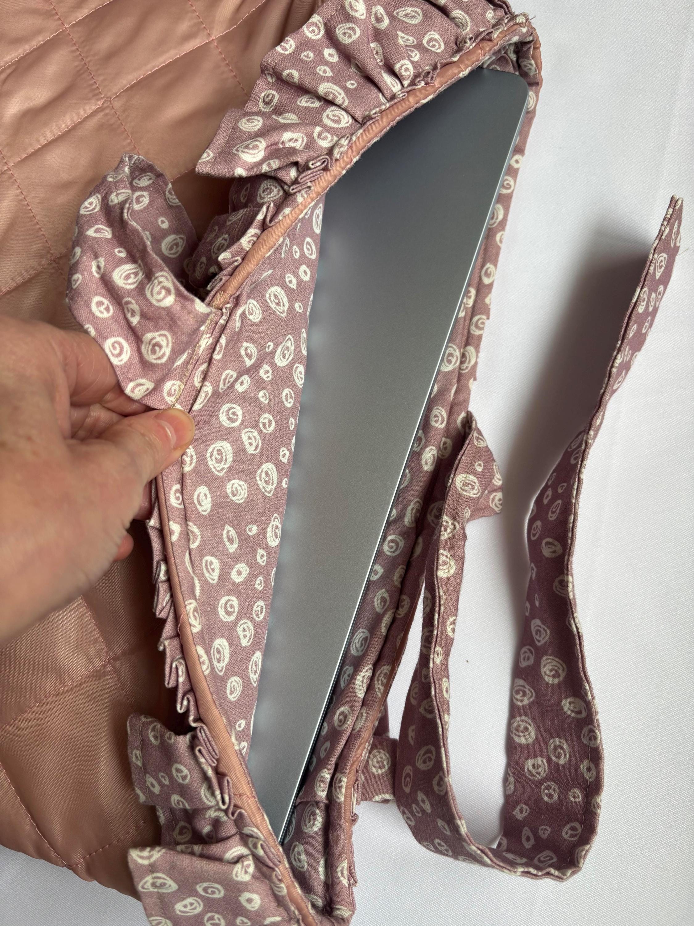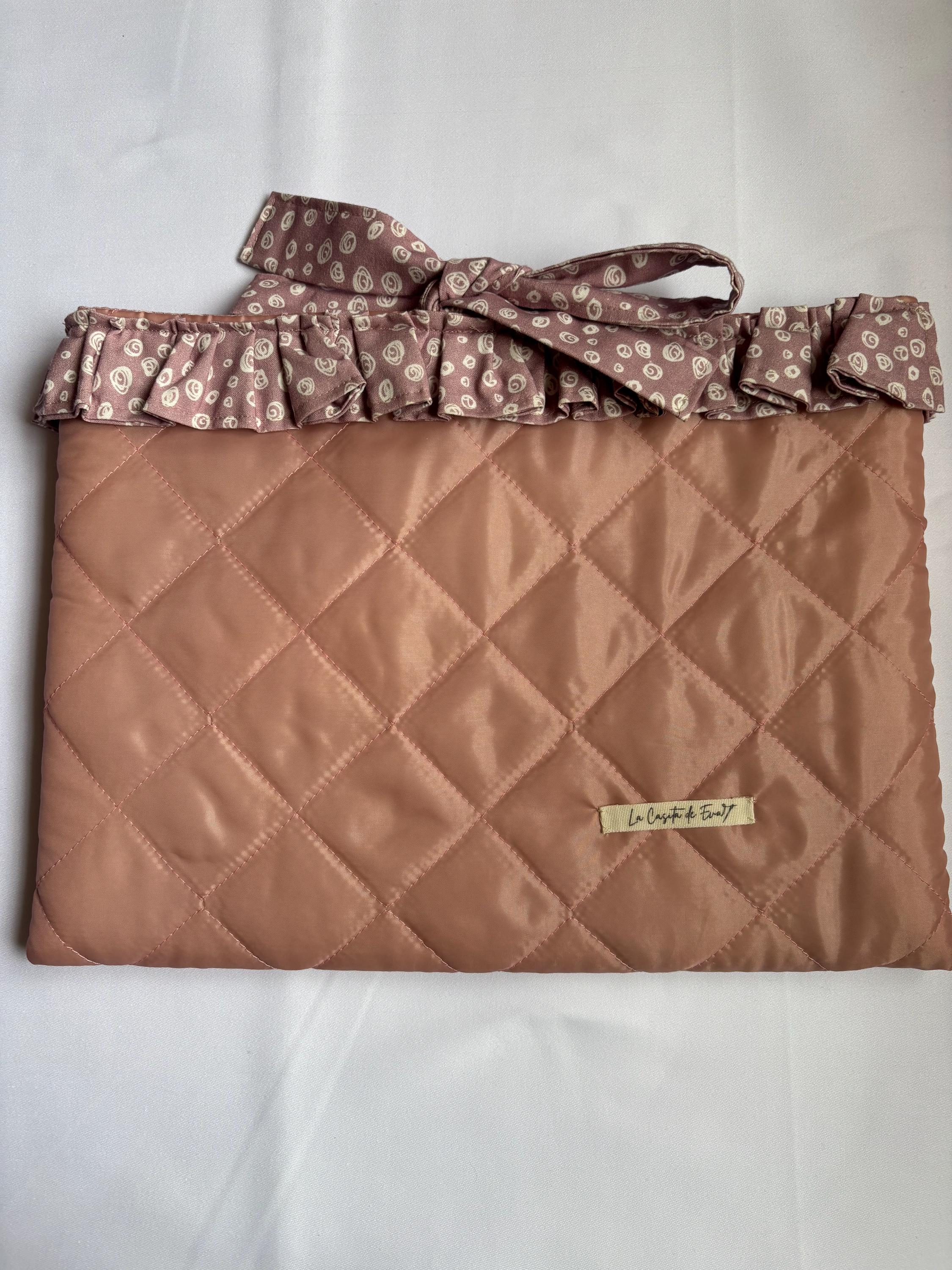 Esta funda para portátil forma parte de la colección Evuchi, inspirada en los detalles bonitos, la suavidad de los tejidos y los acabados cuidados.