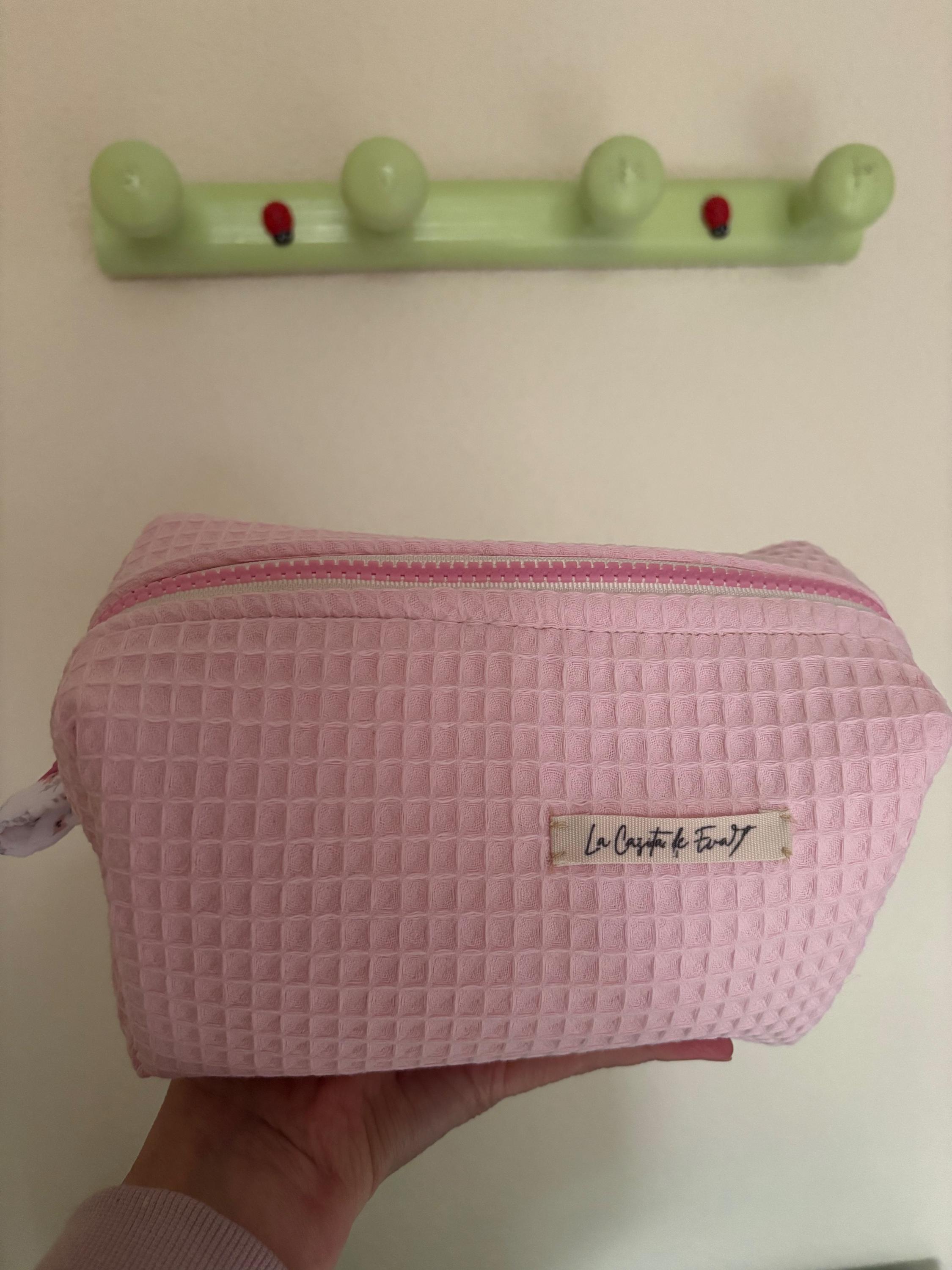 Lleva guata interior (foam), lo que lo hace mullido y le da forma sin perder ligereza. Cada pieza está cosida con mimo, cuidando los acabados para que disfrutes de un neceser bonito, duradero y lleno de encanto.