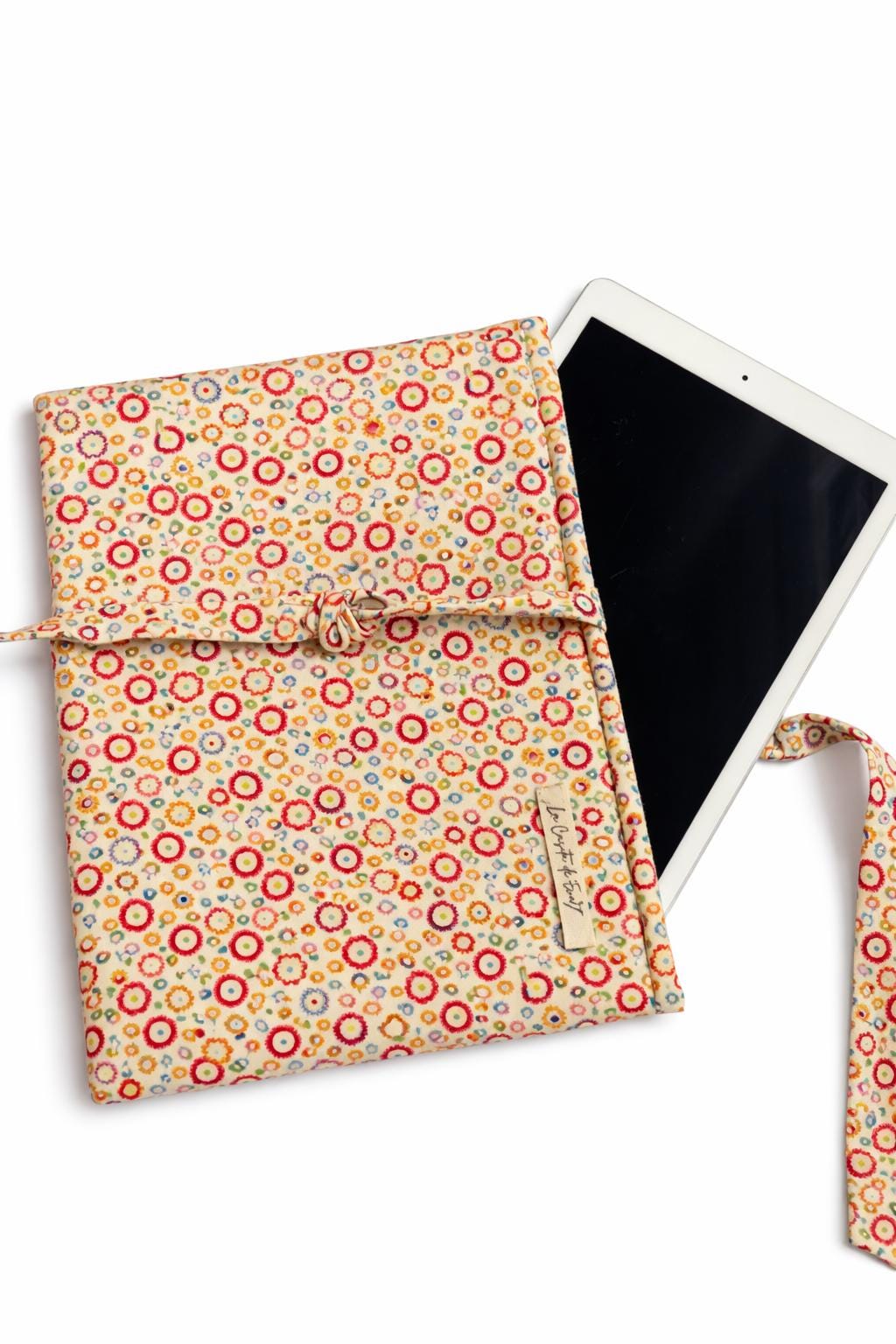 Esta funda está diseñada para llevar tu dispositivo con seguridad sin renunciar a un estilo coqueto. Su acolchado protege sin añadir peso ni rigidez, y su estampado y la lazada le dan ese aire especial que a todas nos gusta tanto.
