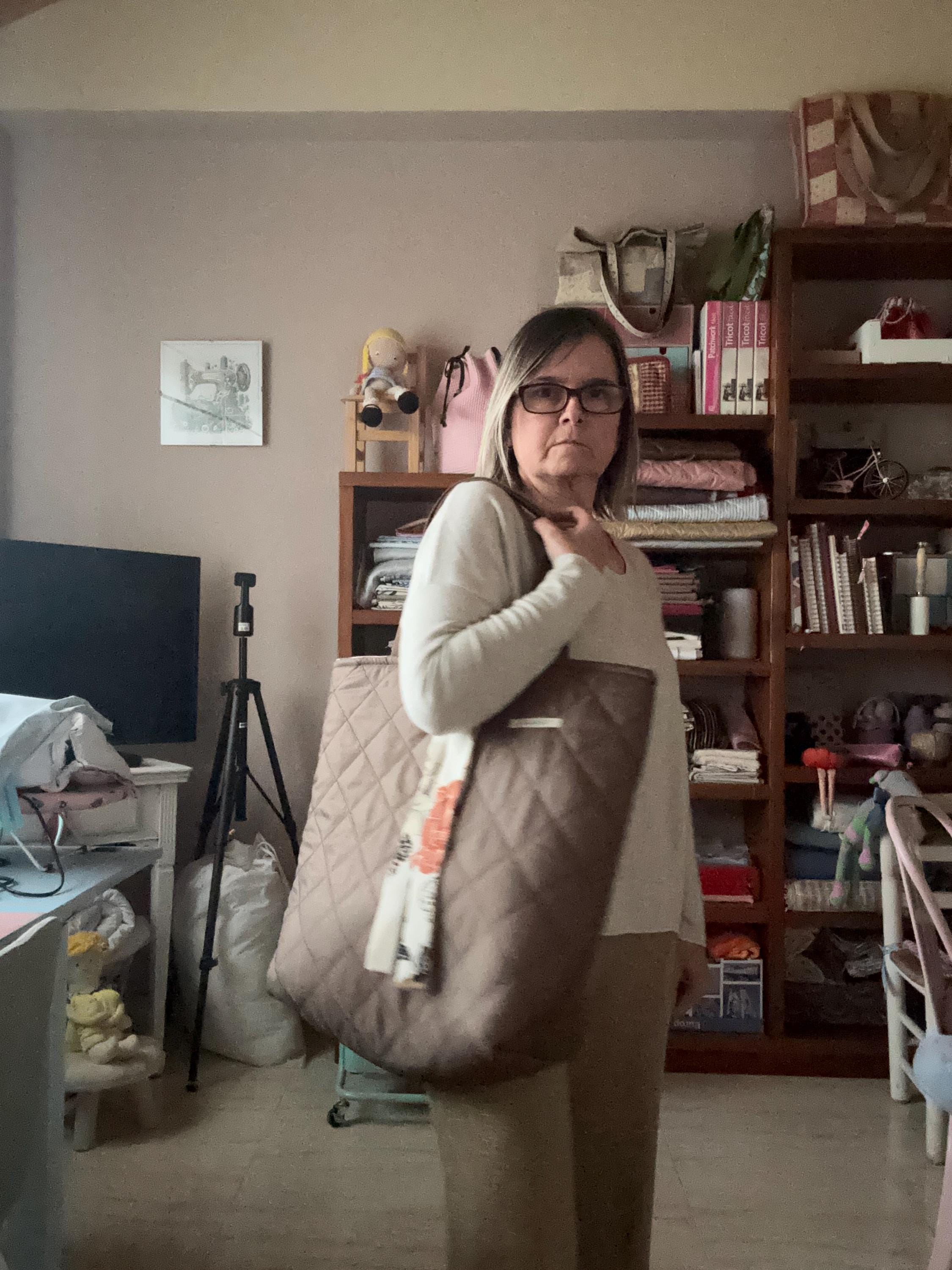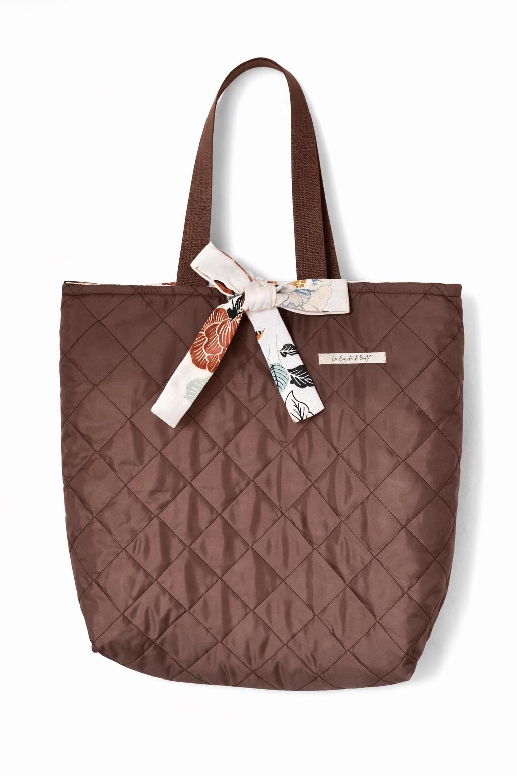 Bolso tote hecho a mano, con diseño atemporal. Confeccionado en tela acolchada color marrón chocolate con costuras formando rombos. Es un bolso práctico y resistente, ideal para acompañarte en tu día a día.